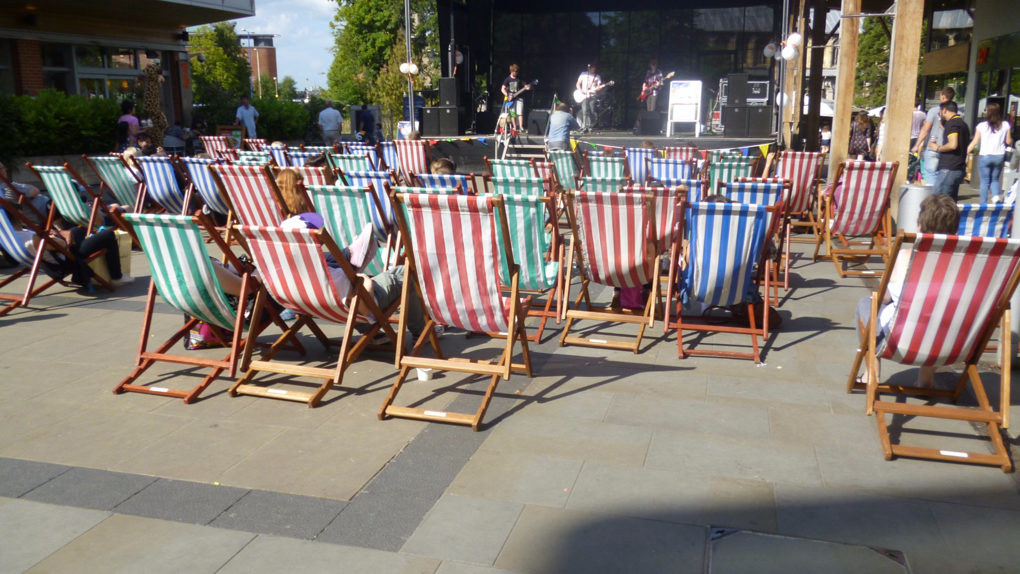 Our seaside deckchairs have provided seating for councils, outdoor events, parks, promenades, concert seating, beach theme events, shopping centres, corporate company events, music festivals, film sets, deckchair open-air cinemas, nostalgic seating for your weddings and garden parties.